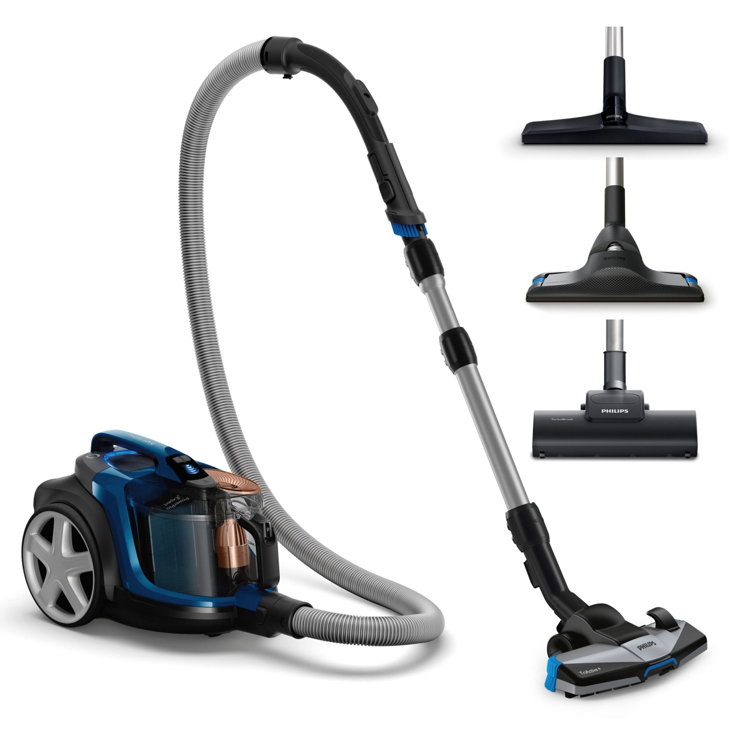 | Додатково: | Насадка TriActive + виконує 3 функції чищення за один раз. Вона має більший отвір спереду для всмоктування більшої кількості забруднень, а спеціально створена підошва видаляє пил глибоко з килимів. Повітряні канали та щітки з обох сторін насадки захоплюють пил і бруд уздовж стін або меблів. Контейнер для пилу можна гігієнічно спорожняти однією рукою. М’який бампер і гумові коліщатка для захисту меблів |