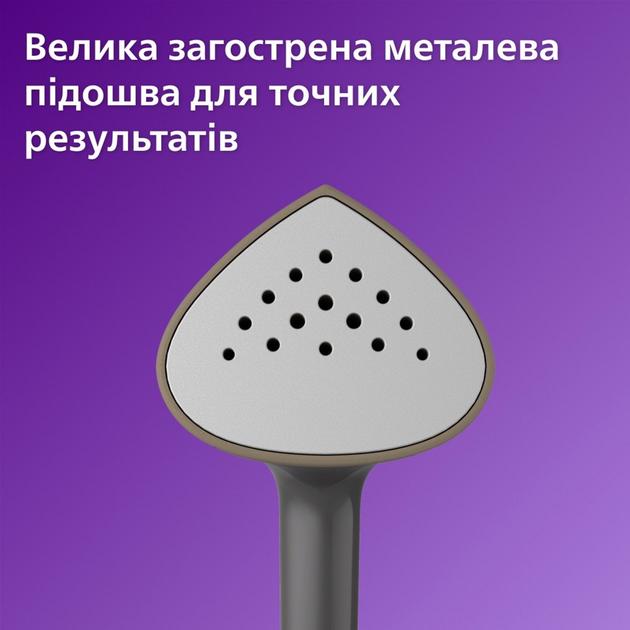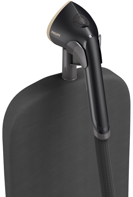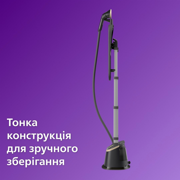| інше: | Вбудована дошка StyleBoard. 3 режими подачі пари. Загострений металевий кінчик підошви відпарювача. Готовність до використання за 60 секунд. Довжина шнура: 2 м. Знімний прозорий 2-літровий резервуар для води. Маса головки відпарювача: 0,43 кг. Маса головки відпарювача та підставки: 4,23 кг. Розмір дошки (ШxВxД): 32х5х60 см. |